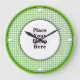 Green Gingham Frame Rundrahmen Foto hinter den Stundenmarken, Platzieren Sie Ihr Foto hier benutzerdefinierte Wanduhr, Ihr Foto erscheint hinter dem runden Foto Rahmen für einen wirklich beruflichen Look - weiße Goldpunkte für Stundenmarken - 12,3,6 und 9 sind größere Punkte, in einem rautenförmigen Muster sieht großartig auf rund oder quadratisch Uhren aus