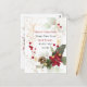 Dieses Design zeichnet sich durch die Weihnachtskomposition von Poinsettia, die grünen und goldenen Blätter, den Kiefernkegel, die leichte Gartenanlage und die roten Beeren aus. Auf der Oberseite der Postkarte - goldene Effekt Konfetti.