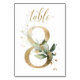Schöne Tischnummer-Karte mit botanischem Motiv - eine Aquarellbild der grünen und goldenen Blätter. Tabelle 8. Bitte Karo alle verfügbaren Nummern