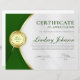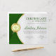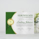Der berufliche Award für das Zertifikat zeichnet sich durch grüne und goldene Farbtöne, Medaille und grüne Sterne aus. Passen Sie auf Ihre Wünsche an.