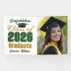 Customize your own green and gold high school Class of 2026 graduate photo banner for a graduation party. Cool varsity letters for the year on great custom commemorative decor for seniors. Classic typography next to your student photograph.