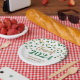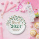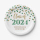 Maßgeschneiderte Graduierungsparty-Klasse von 2024 Tellern in glamourösem Gold und grünem Konfetti-Muster und elegantem handgeschriebenem Stil.
