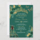 Green Gold Emerald Rose Flor Butterfly Quinceñera Einladung