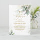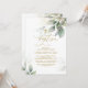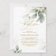 Personalisieren Sie das Design mit den Details zum Party der Taufe Ihres Kindes. Reverse Seite hat mit Aquarell Grün und Gold Blätter Eukalyptus oder nutzen Sie den Platz, um zusätzliche Text und Fotos hinzuzufügen. Klicken Sie auf Anpassen, um eine beliebige Hintergrundfarbe auszuwählen und die Schriftart und Farben zu bearbeiten, um eine einzigartige Baptismus-Einladung für Ihr Baby zu erstellen.