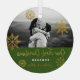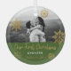 Helle Weihnachtsschmuck mit goldenen Schneeflocken und leuchtend grünem Hintergrund für verlobte Paare. Personalisieren Sie es, indem Sie Ihre Namen und das Bild hinzufügen. Es ist ein gutes Geschenk für frische Weds oder für eine Verlobte/Verlobte.