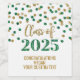 Graduation Party individuelle Weinflaschen Etiketten Klasse von 2025 mit grün und golden Glitzer Muster confetti.