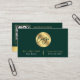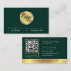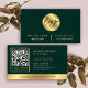 Elegante echte Anwesen Agent Visitenkarten mit QR-Code in smaragdgrün und goldfarben mit Platz für Ihr Logo. Erstellen Sie berufliche QR-Visitenkarten für Ihr Unternehmen mit diesem grünen und Imitat Goldfolie-Design Visitenkarten-Design, ideal für echte Anwesen-Makler, Agent, Kreditsignieren Agent oder andere berufliche.
