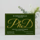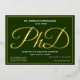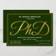 Eine Einladung zum Doktoranden mit Goldfolie, weißem Text und grünem Hintergrund. Fügen Sie einfach Ihre Informationen hinzu, fügen Sie diese Einladung in Ihren Warenkorb, und feiern Sie diese große Leistung. Green Gold PhD Abschluss Foil Invitation Holidayday Design | ©Melissa Patton - Designer