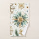 Festliches und elegantes Badetuch mit einem grünen und goldenen Urlaubsmuster mit Aquarellfloralen, Schneeflocken, Kiefern-Blätter und Ziergegenständen. Es verbindet geometrische und abstrakte botanische Elemente mit einer boho-böhmischen Touch und eignet sich ideal für den Winter- und Herbstbadbau.