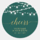Dieser schicke personalisierte Aufkleber fügt Ihrem besonderen Tag stilvolle Details hinzu. Dieses Design zeichnet sich durch goldene Buchstaben " Cheers " und Streichellichter auf einem smaragdgrünen Hintergrund aus. Matching Party Einladungen und Zubehör sind in meinem Shop BaraBomDesign erhältlich.
