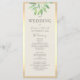 Elegante Hochzeitskarte mit botanischem Aquarellfoliendesign und goldenen Imitaten. Diese minimale und dennoch romantische Anordnung listet die komplette Zeremonie auf und fügt eine natürliche Touch zu Hochzeiten im Freien oder im rustikalen Stil hinzu.
