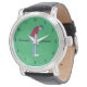 Golfer Design grüne Armbanduhr mit individualisierbarem Text.