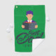 Green Golf Handtuch mit einem Bild eines Mannes, der ein Buch liest.