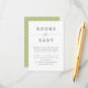 Die klassische, elegante Typografie und die hübschen Details des Frühlingsgrüns machen dieses Baby Duschbuch Einladungs-Einladungs-Einladungskarte zu einer einfachen Wahl für viele verschiedene Duschsuiten. Der flexible Text ist leicht zu modifizieren.