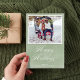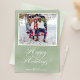 Dieses Design besticht durch einen Happy Holidays-Gruß mit Platz für ein Foto, der einen eleganten grünen Aquarell zeigt. Dieses einfache, minimalistische Layout mit Schriftzeichen und anmutiger Kalligraphie schafft eine zeitlose und moderne Urlaubsfotokarte, die sich perfekt für den Austausch von warmen saisonalen Wünschen eignet.