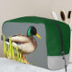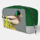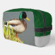Die gezipperte Dopp-Kit-Toilettentasche, die das Foto einer grünen, männlichen Mallard-Ente mit einem soliden, grünen Oberteil und hellgrauen Seiten zeigt. Perfektes Accessoire für Ihre Toilettenartikel für unterwegs!