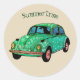 Sommer auf lustigen Aufklebern. Grüner Hippie-Wagen mit Mandalaelementen, die auf dem Aufkleber gezeichnet sind.