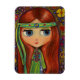 Green Hippie Girl Doll Blume Power Peace Magnet