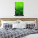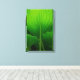 Das natürliche Green Hosta Blätter Wrapped Canvas Print verfügt über ein nahes bis abstraktes Naturfoto eines grünen Hasenblattes mit geschwungenen Linien und einem Wassertröpfchen.