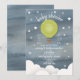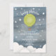 Eine Babydusche mit dunkelblauem, inspiriertem Hintergrund mit weißem Text, umgeben von Sternen und Illustrationen des grünen Heißluftballons und Wolken. Personalisieren Sie mit Details zu Ihrem Anlass.