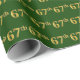 Dieses Verpackungspapierdesign weist die Ordnungsnummer "67." mit einem goldähnlichen Imitat/Imitation auf. Es hat auch einen grünen Hintergrund. Es kann zum Umpacken eines Geschenks verwendet werden, das für den siebzigsten Geburtstag eines verheirateten Ehepaares, vielleicht für den siebenundsechzigsten Hochzeitstag, oder für andere 67. [~Z0000020]