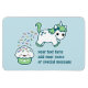 Super niedlich grünes Einhorn kackend auf glücklichem Kuchen. Personalisieren Sie mit Ihrem eigenen Text.