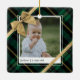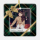 Elegante und festliche besondere Erinnerungsfamilie Foto mehrfarbige grüne karierte Imitate Stoffmuster Verzierung. Designed to like a Christmas Geschenk. Wir haben das Ornament mit einem schönen goldenen Bogen und Band dekoriert. Single-Foto-Layout auf jeder Seite des Ornaments, um Ihre besondere Familie Foto oder Ihr Kind's Foto mit benutzerdefinierten Beschriftungen auf jeder Seite. Kariertes Design von Moodthology Papery.