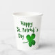 Green Kleeblatt Irish Happy St. Patrick's Day Paper Cups. Ein Happy St. Patrick`s Day Text mit grünen irischen Kleeblättern für Glück. Sie können den Text ändern.