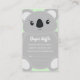 Dieses Design-Design der Koala Bear Baby Shower Collection mit einem schlicht anmutigen Koala Bär auf einer rosa, blauen oder grünen Palette feiert Ihren ganz besonderen Geburtstag und Ihre Babydusche. Personalisieren Sie dies mit den Details Ihrer Geburtstagsparty und Babydusche einfach und schnell. Drücken Sie einfach die Schaltfläche Anpassen, um den Stil und die Platzierung des Textes weiter zu verändern und zu formatieren. Erstellt von Rachel Alvia, © Alicorn Studio