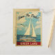 Dieser Vintage, nautische Themensee Green Lake Wisconsin verfügt Save the Date über ein Segelboot mit Möwen im Flug und einen wunderschönen blauen Puffwolkenhimmel. Matching Wedding Invitations, RSVPs und Insert cards sind hier (Phrase könnte geschnitten werden, kopieren Sie bis zum Ende der Nummer "...516"): https://www.zazzle.com/collections/119019904125157516