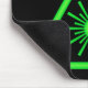 Schwarzes Mousepad mit leuchtend grünem Laserwarnsymbol.