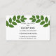 Eleganter, grüner Lorbeerkopf auf weißer Hochzeitskarte mit Blätter. Diese Empfang-Karte hat einen grünen Hintergrund.