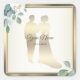 Green Leaves Flower Golden Frame Wedding Party Quadratischer Aufkleber