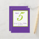 Green Lila Wedding Tischnummer Card Design von Elke Clarke ©2010. Passen Sie Ihre persönlichen Daten, Ihren Hochzeitstag und Ihre Farben an. Bestellen Sie eine pro Tisch mit jeder Tischnummer, erhalten Sie aber trotzdem den Massen-Rabatt für die bestellte Gesamtanzahl. Ändern Sie die Farben auf den Tischnummern, um Ihre Hochzeitsfarben anzupassen.