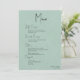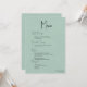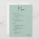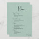 Whimsical minimalistisch modern, anpassbar schwarzen Skript Typografie, elegante Hochzeitsmenü. Der hellgrüne Farbstoff Leinen bedruckte Texturhintergrund verleiht eine Touch Bio Eleganz. Andere Farben sind verfügbar.