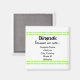 Ein anpassbarer Magnet mit einem grünen Link-Design über Oben und Unterseite. Die Slogans und Informationen können auf Wunsch an jeden Anzug angepasst werden.