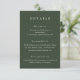 Eine klassische Hochzeitsdetails-Karte mit grünem Hintergrund und Aquarellmagnolien-Blume. Bearbeiten und personalisieren Sie es mit Ihren Hochzeitsdetails über den Empfang, die Unterkunft und den Transport, und die Hochzeitswebsite (optional). Die Hintergrundfarbe kann geändert werden. Entsprechende Einladungen und andere Artikel aus dieser Sammlung sind in meinem Geschäft Wowweds erhältlich.