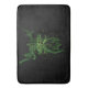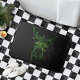 Ein grünes Männchen-Gesicht aus keltischem Set in einer Kulisse aus schwarzen, grünen Blätter.