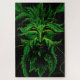 Ein grünes Männchen Gesicht des keltischen Lore-Set in einem Hintergrund schwarzer, grüner Blätter