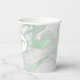 Papiertassen aus besondere Anlass in einem silbernen, weißen und grünen Marmorausdruck. Die Grafik eines weißen Ovals mit einem rautenartigen Rahmen hat einen speziell für Ihre Veranstaltung angepassten grünen Text.