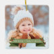 Mit diesem festlichen Keramik-Ornament mit grünem Bandtag und fröhlichem Weihnachtstext mit heiligem Akzent präsentieren Sie Ihr besonderes Foto. Ersetzen Sie sich mit Ihrem speziellen Bild für ein perfektes Urlaubsgeschenk.