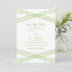 Einfache und elegante Moderne Deko Save the Date Einladung mit gestreiftem, kreuz-kreuz geschraftetem Deko-Design in Grün. Dieser klassische Ankündigung Datum freihalten lässt sich einfach mit Ihren Hochzeitsdetails anpassen. Klicken Sie für weitere Anpassungsoptionen auf die Schaltfläche Anpassen.