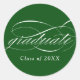 Green Modern Elegant Script Abschluss Classic Round Sticker bietet ein schönes und elegantes Drehbuch, zusammen mit Ihrem Klassenjahr.