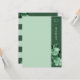 Dieses elegante Schreibtischdesign mit einer dekorativen Rahmen, der Platz zum Hinzufügen Ihres Namens und einen persönlichen Gruß enthält. Im Mittelpunkt des Designs steht jedoch die zarte, Vintage Blumendarstellung in grünen Farbtönen. Die Rückseite der Karte weist ein koordinierendes Blumenmuster auf.