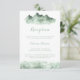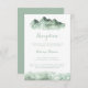 Diese grüne Hochzeitskarte für den Empfang ist ideal für eine rustikale Hochzeit. Das Design besticht durch einen handbemalten, wasserfarbenen Berg, der ein Landschaftsmotiv inspiriere.