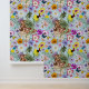 Ein kleiner grüner Drache sitzt auf einem von drei Pilzen mit Blume in blauer Umgebung