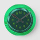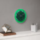 Grüne Neon Metallische Abstrakte Uhr. Sehr cooles Uhrendesign, das metallisch aussieht. Hellgrüner abstrakter Hintergrund hat einen glänzenden Look. ALLE DESIGN-ELEMENTE SIND DRUCKT
