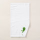 Bath towel set, consisting of a face cloth, hand towel and bath towel with an octopus design. You can customise this bath towel set with any text of your choice. Should you require any help with customising then contact us through the message link on this page. Green octopi design bathroom towel set
