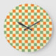Green Orange Brown Checkered Gingham Pattern Große Wanduhr