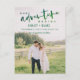 Schattierte grüne, moderne Schrift Stilvolle handgeschriebene Kalligrafie Unser Abenteuer beginnt Foto Hochzeit Speichern Sie das Datum Ankündigung Postkarte